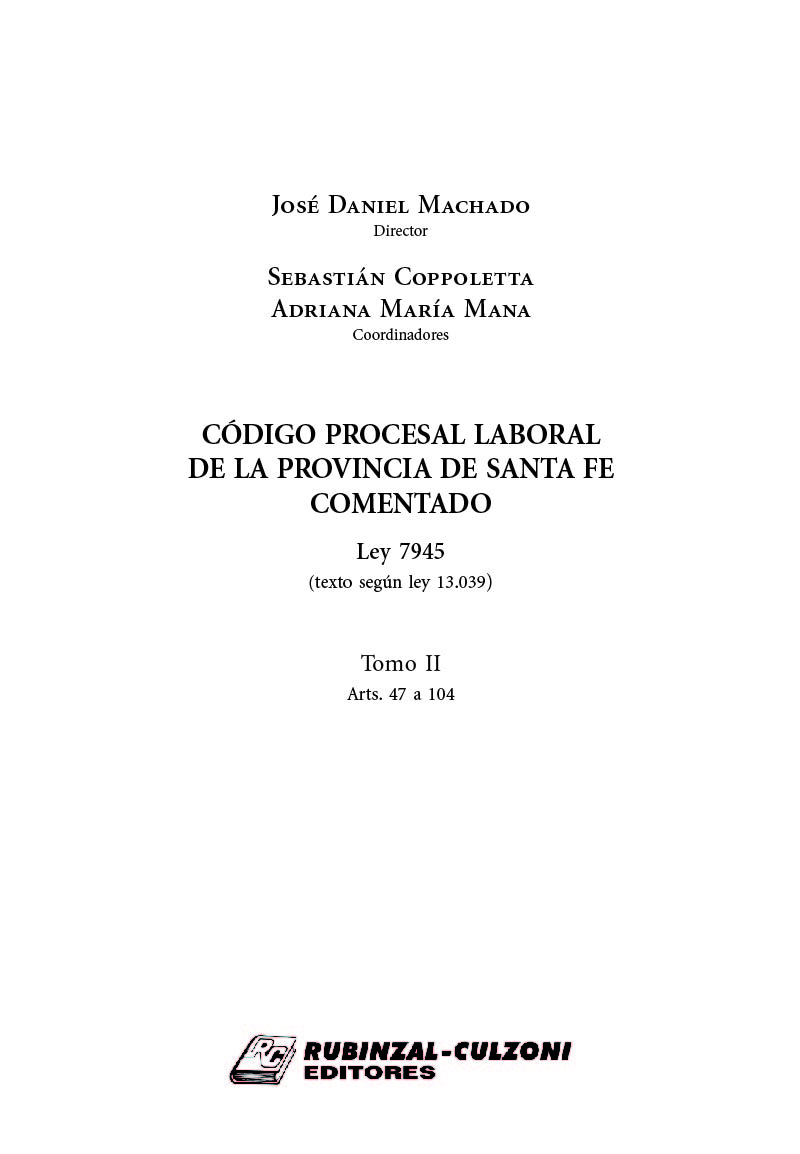 Código Procesal Laboral de la Provincia de Santa Fe comentado. Ley 7945 (texto según Ley 13.039).