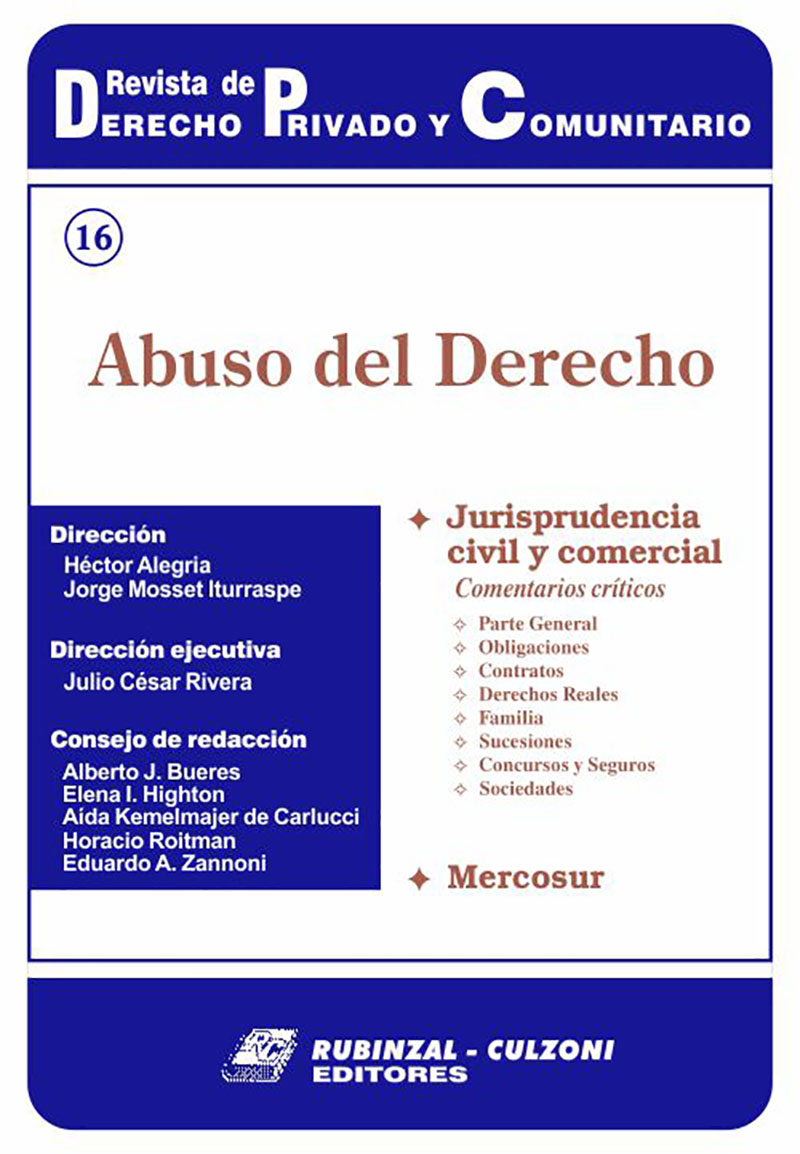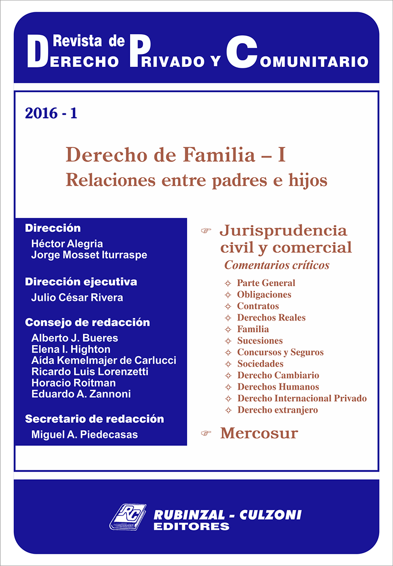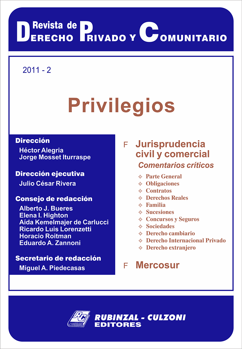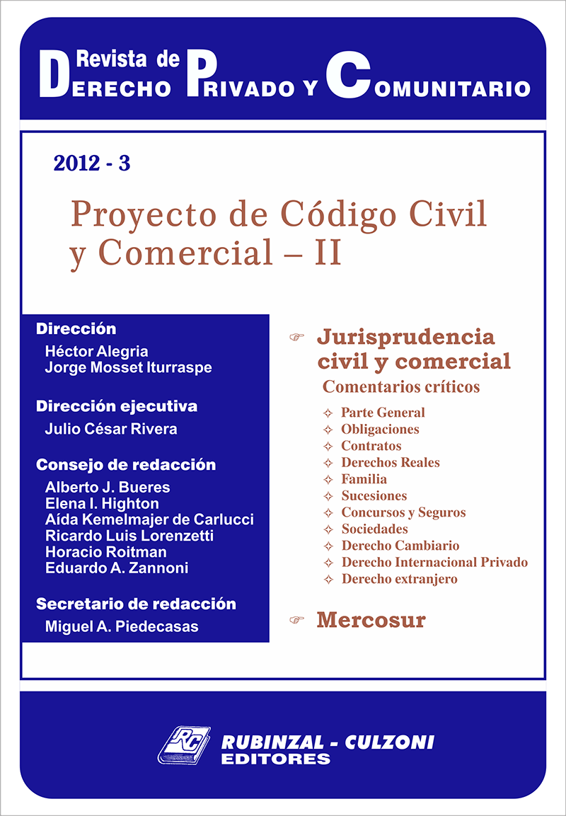 Consejo de redacción: Bueres, Alberto J. - Highton de Nolasco, Elena Inés - Kemelmajer, Aída - Lorenzetti, Ricardo Luis - Medina, Graciela - Roitman, Horacio - Sozzo, Gonzalo