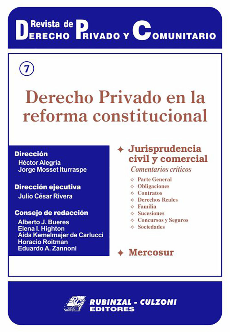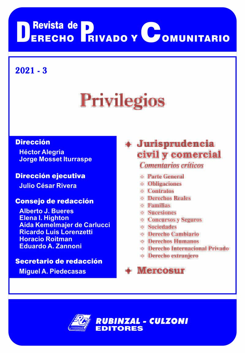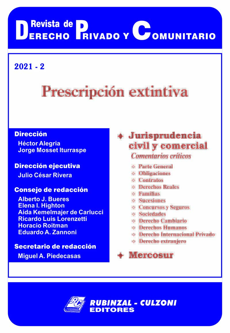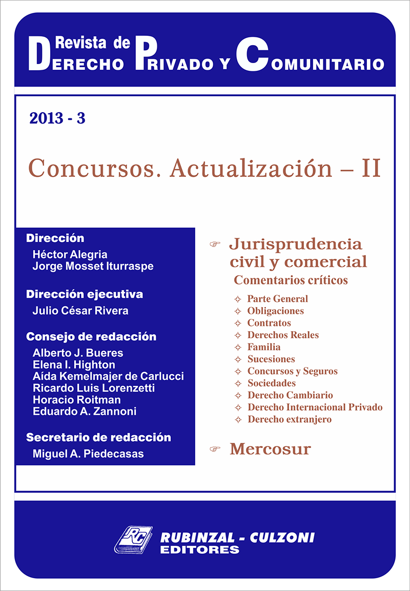 Consejo de redacción: Bueres, Alberto J. - Highton de Nolasco, Elena Inés - Kemelmajer, Aída - Lorenzetti, Ricardo Luis - Medina, Graciela - Roitman, Horacio - Sozzo, Gonzalo